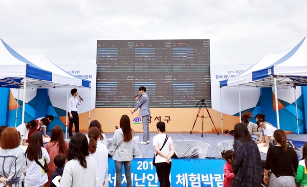 지난 7일 강서구 주최로 롯데몰 김포공항점 잔디광장에서 재난에 대한 경각심을 높이고 어린이의 안전의식을 확산하기 위해 열린 ‘강서 재난안전체험 박람회’에서 응급처치, 화재안전 등과 관련한 프로그램이 운영되었다.